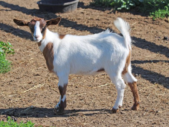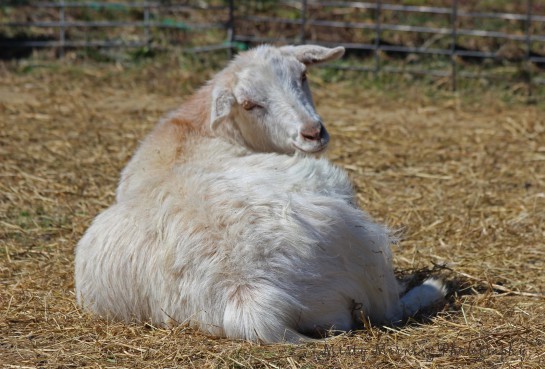 This is CARMELLO, Marshmellows twin sister. She also is registered and naturally polled. This photo was taken shortly before she kidded with polled twins last spring.